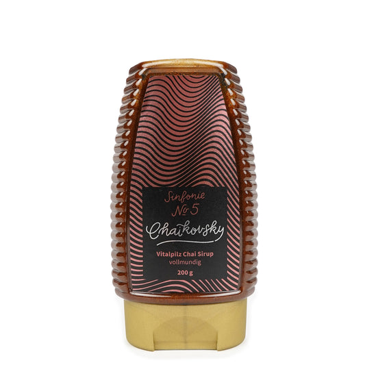 Unsere Kreationen verschmelzen die reiche Tradition des indischen Chais, die belebende Energie der Vitalpilze und die natürliche Süße der Agave in einem praktischen Sirup.