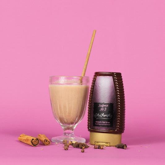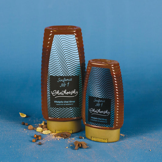 Unsere Kreationen verschmelzen die reiche Tradition des indischen Chais, die belebende Energie der Vitalpilze und die natürliche Süße der Agave in einem praktischen Sirup.
